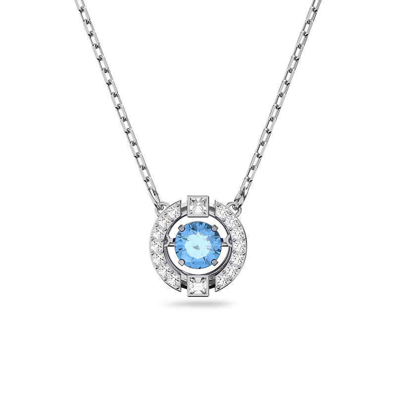 Dây chuyền Swarovski chính hãng 5279425 lấy cảm hứng từ ý tưởng viên pha lê xanh nhảy múa vui tươi. Sparkling Dance necklace, Round cut, Blue, Rhodium plated được bao bọc xung quanh là hàng pha lê lấp lánh.