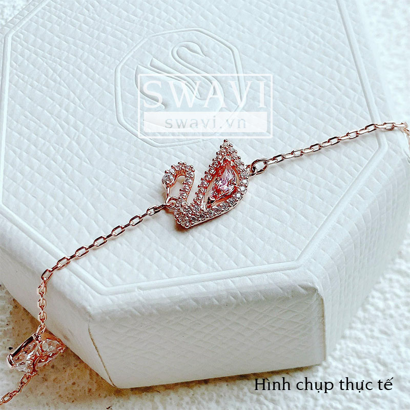 Lắc tay Swarovski chính hãng Dazzling Swan Bracelet, Pink, Rose gold-tone plated 5485876 hình thiên nga hồng trẻ trung và lãng mạn.